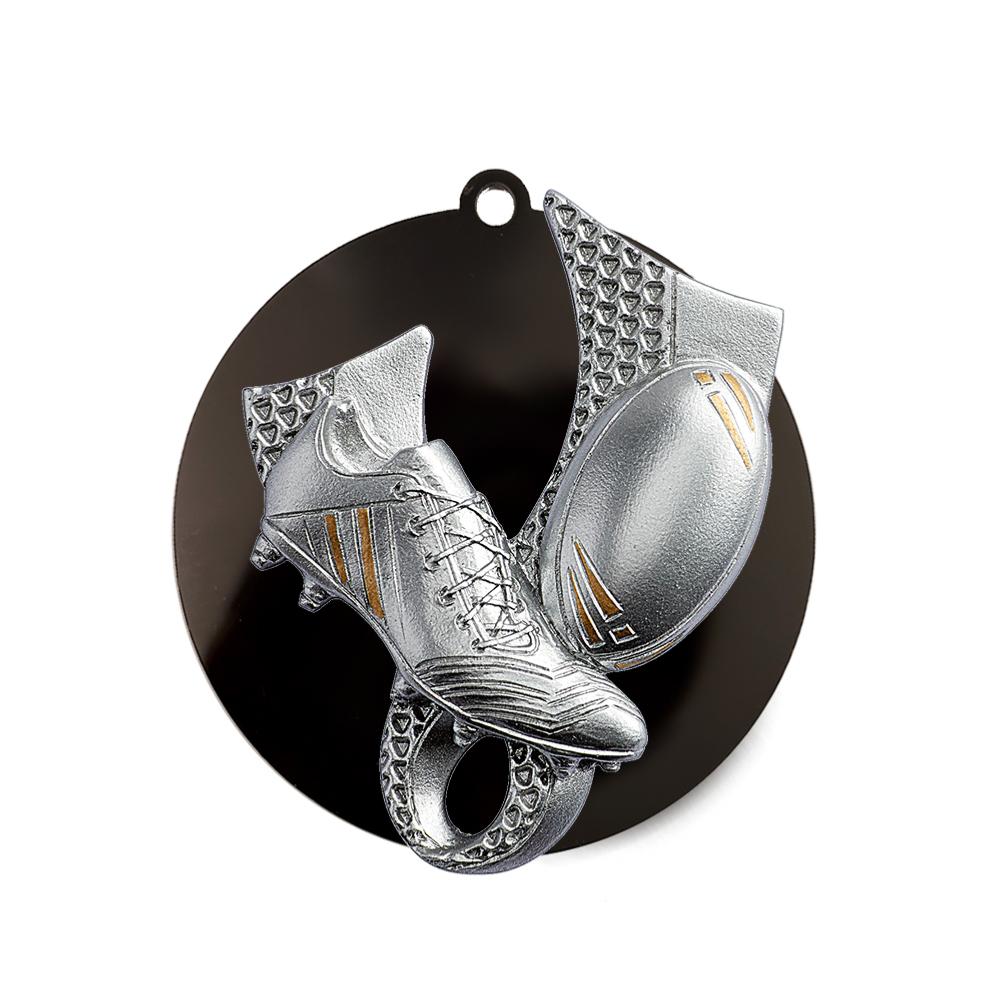 Cette médaille rugby de 70 mm en acrylique est conçue pour récompenser les joueurs et équipes lors de tournois ou compétitions de rugby. Elle est ornée d’une applique en résine représentant un ballon de rugby doré accompagné d’un crampon argenté, avec des détails réalistes qui évoquent l’intensité du jeu.