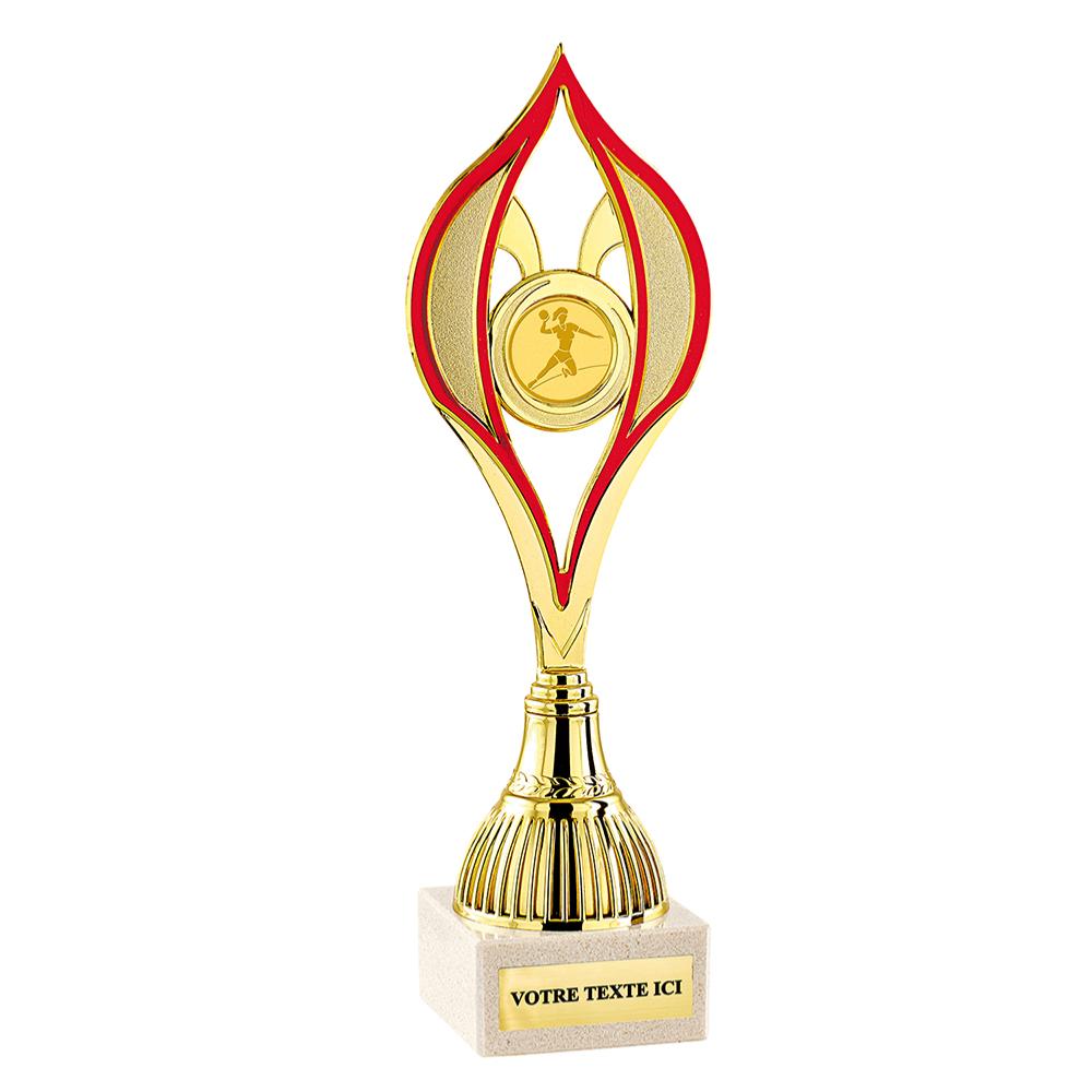 - Vous pouvez personnaliser ce trophée avec une plaque Gravoply rigide de 45x15mm (Réf. GR), couleur or, le texte en noir.